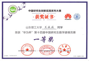 王丝丝同学获第十四届中国研究生数学建模竞赛一等奖