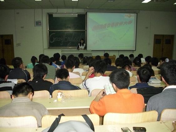 4月29日晚7:00,“疯狂英语演讲比赛”决赛在5号楼102教室举行。此次比赛由疯狂英语俱乐部举办。比赛本着公平、公正、公开的原则为大家提供了一个展示自我的舞台。