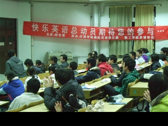 再迷人的港湾也无法掩饰大海的壮阔,再耀眼的星宿也不能遮蔽宇宙的浩瀚。为了展现同学们英语的才华,增强英语学习的激情。11月18日晚上7点,交通与车辆工程学院疯狂英语俱乐部与轻工学院英语协会在东校区3号教学楼410教室联手举办了快乐英语总动员活动。此次活动有校社联主办,疯狂英语俱乐部与英语协会承办。