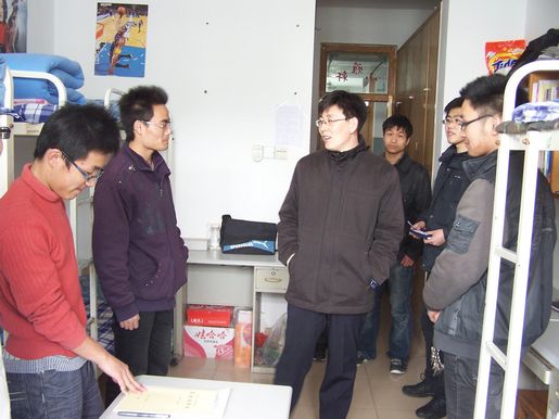 在检查卫生过程中,老师强调“环境卫生是一种习惯,把垃圾扔到地上是3秒钟的事情,把它扔到垃圾筐里也是3秒钟的事情”。于此同时,老师还向学生了解学习情况,并询问06级的考研、就业情况等。