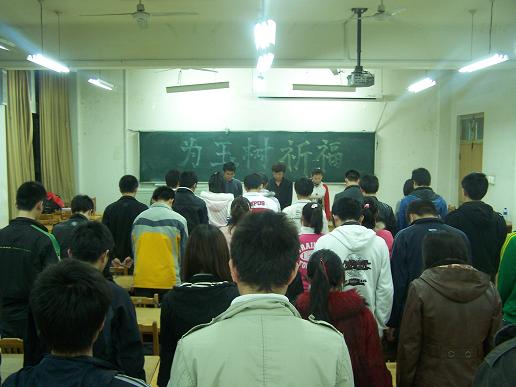 4月14日,青海省玉树藏族自治州玉树县发生7.1级强震。为表达对青海玉树地震遇难同胞的深切哀悼,21日晚我院学生会组织学生会的全体学生干部在12号楼211室举行了“为玉树祈福”的默哀仪式,仪式由我院学生会主席谭政主持。