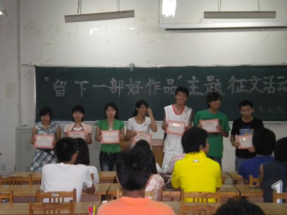 又是一年毕业时,正值我校2010届毕业生即将离校之际,由青春在线和我院幽然书友苑共同举办的“留下一部好作品”活动也顺利落下帷幕。6月25日晚,该活动的颁奖仪式在12号楼211室举行。