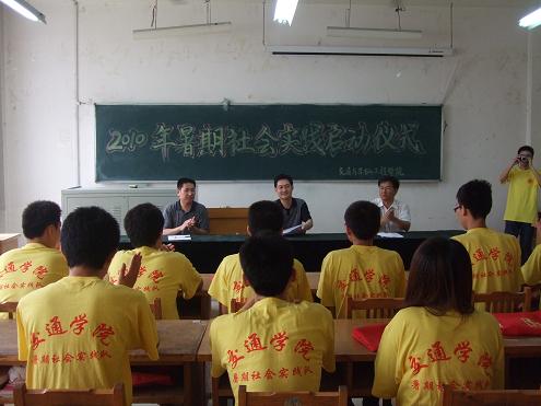 七月十五日上午9:00,交通与车辆工程学院在12号教学楼211教室举行了2010年暑期社会实践启动仪式。校团委副书记赵明、学院党总支副书记王光坊、08级辅导员刘灿德以及11支入选的校级重点团队参加了这次启动仪式。