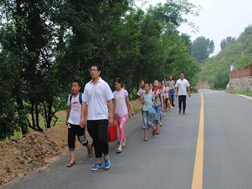 放学后,为安全起见,各班级老师组织学生们在学校门口按家庭住址有序排队,由各队老师负责护送回家。一路上,队员们带领孩子们唱起了山歌,第一天的支教工作结束在这嘹亮的歌声中。“情系阜平”支教团队队员对孩子们积极热情,短短的一天与孩子们结下了深厚的感情,为以后的工作进展打下了坚实的基础。