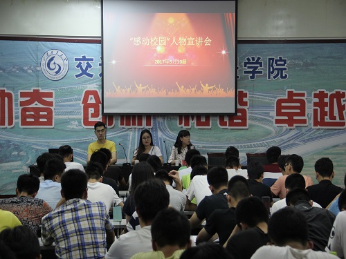 为了更好地传播青春正能量,弘扬大学生奋斗励志精神。我院于5月10日晚在12号教学楼201教室开展“感动校园”人物宣讲会。会议由学院新闻部副部顾宗阳主持,学校ACM集训代表队成员陈元智、向日葵志愿服务团代表队成员巴迪迪以及危小露,各班级代表参与。