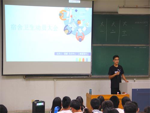 为迎接我校本科教学评估,加强同学们的宿舍卫生意识,5月17日晚上,我院在4号教学楼303教室举行宿舍卫生动员大会,此次大会由学院团总支辅导员国睿主讲,公寓管理中心主任马文乾主持,我院大一、大二、大三的全体宿舍长参加了此次动员大会。