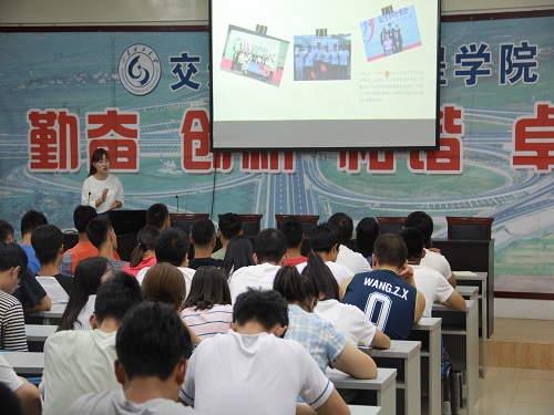 朱灿从大学生竞赛概况出发,先简单介绍了“创青春”挑战杯的有关信息,让同学们对其有一个初步的了解。然后详细介绍了校赛的情况,鼓励同学们积极参加,锻炼自己的能力。为了提高同学们对这个比赛的热情,朱灿以视频的方式向同学们展示了往届的一些优秀作品以及成果,成功引起了同学们的热切关注,大家都看得很认真,时不时伴随着掌声。朱灿讲得很具体,一些细节方面更是强调多遍,避免遗漏。随后,她解决了困惑同学们很久的问题:为什么要参加比赛。她说大学就是给自己不断尝试机会的一个舞台,什么能做,什么做不了,只有做了才能知道。然后以14级的一个学长的亲身经历为例,鼓励大家勇于尝试,以风趣的话语,和大家面对面交流,并用采访该学长的一个视频,告诉大家,只要肯努力,没有什么是不可能实现的。最后,朱灿还详细说了参加比赛的时间和流程,整个巡讲会在热烈的鼓掌声中结束了。