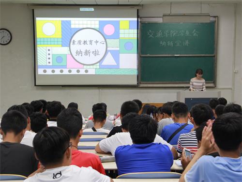 交通与车辆工程学院学生会分设学风建设中心、公寓管理中心、综合事务中心、素质教育中心、创新实践中心、信息宣传中心、社团工作中心,共二十个部门,共同为学院的建设和正常运行做出贡献。为使同学们对各中心及部门的工作有一个大概的了解,便于新生们根据个人实际情况更理性地选择适合自己的部门进行发展,各中心代表精心制作了ppt并做了详细介绍,介绍各部门日常工作内容,展示各自工作成果以及各自部门的优势。他们还向新生们提出了自己的要求,即具备勤奋、认真、礼貌等基本素养。信息宣传中心的宣讲人在展示PPT之前放了一段由网络部所剪辑的一段视频,参加宣讲的同学纷纷表示视频做的十分炫酷,很有新意。各个中心的宣讲人为此次宣讲都做了一番精心的准备,在宣讲过程中,宣讲人幽默风趣的讲解使在场新生们掌声欢呼声不断。