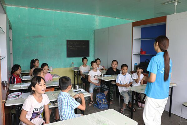 借着不太强烈的阳光,成员们首先带着孩子们学习了健身操,活动了一下身体,之后开始了今天的课程。今天的课程主要有基础性的知识课,比较带有技巧性的手工课及带有娱乐性质的音乐课。