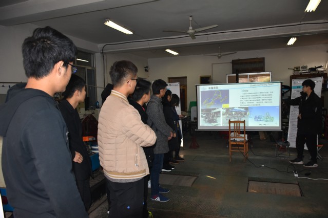 紧接着,由车身车架组负责人刘科岳向同学们详细介绍了车队历史、获奖情况、车队内部建制(运营、技术)、各组职能以及第四代赛车技术关键及创新点等情况。并简单提及了中国大学生方程式汽车大赛等其他与车队发展相关的赛事。最后,刘科岳通过让大家观看2018赛季官方宣传视频及至尚车队纪录片,使同学们对车队有了更直观的认识,对于科技创新也有了自己独特的见解。