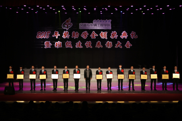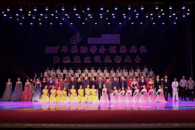 为表彰先进,树立榜样,11月25日晚,交通与车辆工程学院2018年奖助学金颁奖典礼暨班级建设表彰大会于大学生艺术中心礼堂举行。校党委常委、副校长张祥云,聊城中通客车控股股份有限公司人力资源部部长张兴华,校学生工作部、团委、教务处、研究生院、招生就业处、创新创业学院等部门负责人以及交通学院领导班子成员出席典礼为受表彰的先进集体和个人颁奖,并与学院师生代表一同观看了精彩演出。