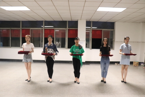 对服务过程中出现的意外情况,比如东西掉落等,王紫嫣也作了一些说明,要求大家时刻谨记礼仪姿态,用正确、规范的仪态去解决问题。在讲解完颁奖礼仪部分后,参训队员综合前面几个内容所学到的进行了模拟演练,王紫嫣就演练过程中所存在的问题提出了意见,参训队员们虚心接受并改正,认真练习,用心领会每一个动作要领。随着训练的逐渐深入,队员们掌握了相关的礼仪技巧,演练有条不紊地进行着。为达到更好的效果,训练过程中也给予了参训队员足够的休息时间,并通过互动来调动现场气氛。最后,参训队员表示此次培训让她们收获到很多。