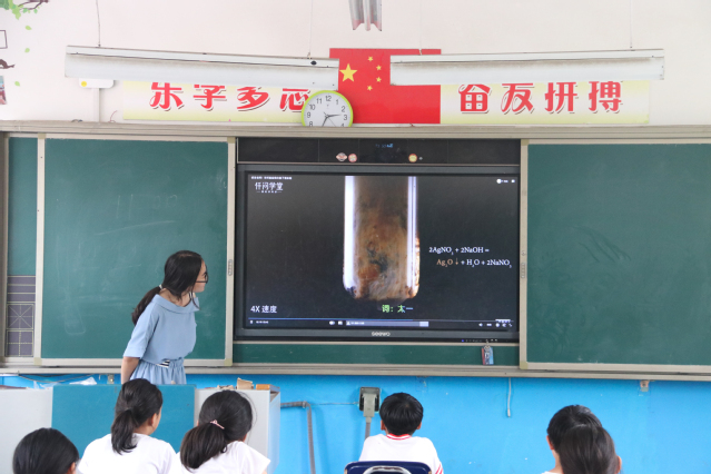来自化学化工学院的刘清玉担任奇妙化学的老师。刘清玉深入浅出的向学生们讲解化学知识。将平常在实验室才能见到的神奇化学反应带进课堂,为保证学生们的安全,刘清玉以视频演示的形式展示了多种化学反应产生的颜色变化。