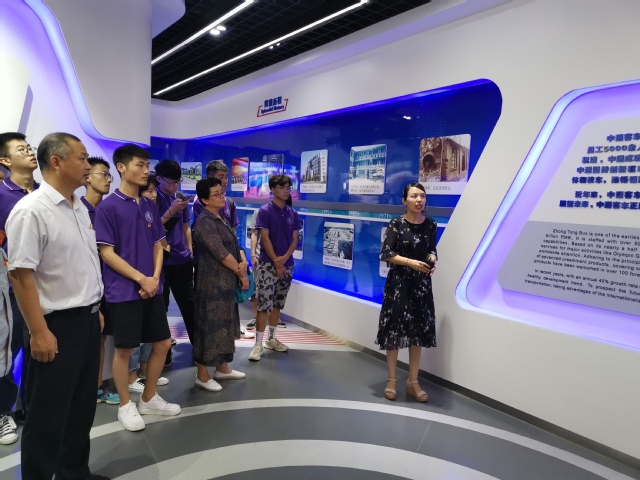 上午9点,团体成员首先进入的是中通公司的科研楼的展馆,由相关的专职人员为同学们专业讲解关于中通的历史,文化,精彩瞬间,以及中通的产品等。在展馆的最后是整个生产线的全景模型图。同学们被展馆的氛围,讲解员的解说内容,以及中通公司悠远的历史文化所吸引,迫不及待的想去真实的生产场地参观学习。