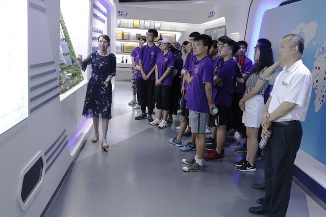 当日上午,团队成员抵达车企后首先前往中通客车展示厅参观,讲解员依次对企业概况、发展历程及企业所拥有的车型进行详细介绍。讲解员讲到:“中通客车企业发展历时四十余年,企业新能源汽车的发展不仅迅速,成果也尤其显著,中通新能源客车屡次创下行业第一的佳绩,并且多次作为奥运会等国际赛事指定用车。中通客车积极开拓海外市场,使得中通新能源客车远销海外,遥遥领先行业。”团队成员们通过模拟沙盘观看了中通客车生产车间的全景,对客车加工流程也有了简单了解。