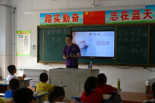 以爱国主义为核心的民族精神应当贯穿于孩子们成长的过程中,唯有这样新一代青少年才有信仰,国家才有力量,民族才会有希望。为加强孩子们爱国主义教育,激发学生的爱国主义热情,树立民族自尊心、自豪感,山东理工大学助力乡村振兴——“爱之传承”实践团于7月14日上午在山东省德州市武城县明德小学开展了爱国主义教育讲座。