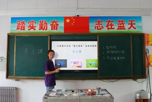 7月23日上午,我院“助力乡村振兴——爱之传承”社会实践团在德州市四女寺镇明德小学开展了一堂生动有趣的手工折纸课,让孩子们在课堂上提高动手能力,在相互协作中收获友谊,丰富孩子们的假期生活。