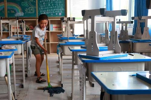 在劳动体验课中一位积极的打扫卫生的小男孩给所有人留下了深刻的印象,他积极帮助女孩子承担一部分劳动任务,小男孩父母长期在外,家中只有他和爷爷,他经常在家中帮助做家务,做农活,在劳动体验课中也十分积极。