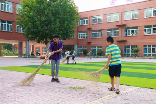 首先实践团成员带领高年级的同学在操场请扫垃圾,由于操场举办的活动比较多,需要打扫的地方也比较多,在队员的引导下,同学们互相帮助,十分仔细认真地去打扫每一个角落。