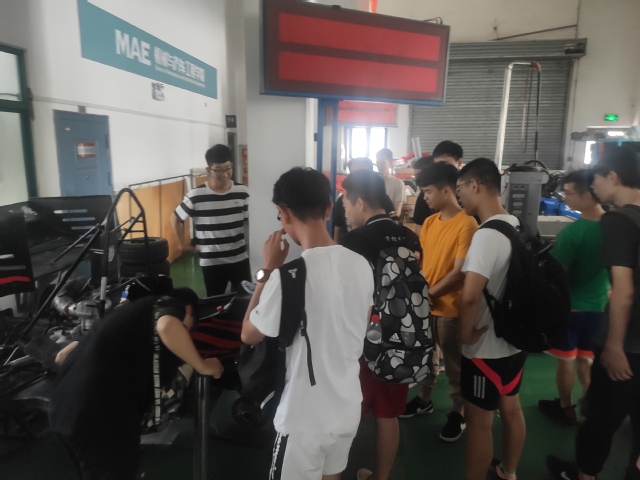 我校指导老师徐家川与青岛理工大学汽车学院指导老师进行了深入友好的交流,实践团成员也与青岛理工大学方程式赛车队成员进行技术交流与参观。发动机组参观青岛理工大学机房,对方发动机标定工作正在进行,他们今年选用的是四缸发动机。悬架组负责人对赛车悬架部分介绍,他指出18赛季悬架系统的横臂由17年钢材料变为碳纤维材料,实现全碳纤维悬架系统;半轴由去年的40Gr材料变为钛合金材料,所有的轻量化设计都是基于大量的CAE仿真、实验、工程实践经验。最后,双方各组负责人互留联系方式,将继续保持学术探讨。