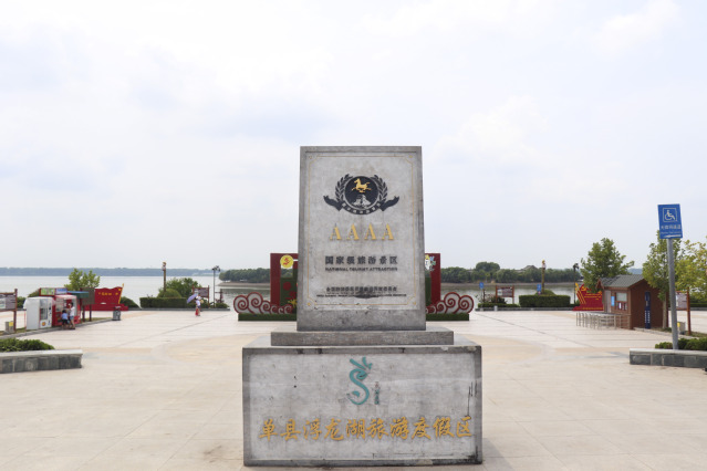 经过近两个小时的车程,实践团成员们首先到达单县浮龙湖旅游度假区。度假区是单县文化旅游中心之一,亦菏泽市唯一一家省级旅游度假区,其详细展现了单县湿地建设和旅游文化发展情况。在度假区内,成员们共同参观了芙蓉广场、生态岛、生态湿地等特色旅游景点,了解单县湿地改善发展状况,感受单县特色旅游文化。