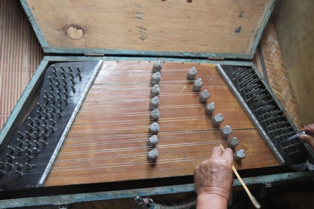 紧接着,曹言召给队员们讲到,多年来,班子里的人走走留留,坚持到现在大家对杨琴的热情与认识也发生了变化,现在科技越来越发达,时代也在不断前进,这些艺术也慢慢不受重视,为响应政府号召,支持乡村文化建设,班子还经常义演。在延续经典和创造新曲中,杨琴一直在前进,最后,曹言召表示,如今传统艺术的传承与保护已经提上国家层面,自己对未来很有信心,也将不断传承与发扬杨琴文化。