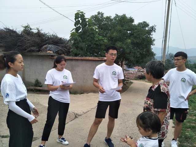 首先,调研组队长赵隆达进行了此次调研的具体分工。调研组全员被分为两组,一组进行旅游经济建设调研,二组进行文化广场建设调研。然后,两组分头行动,各自进行调研工作。一组顺着道路走势,深入到村子内部进行调查;二组沿着旅游路线,完成各村户的走访调查。由于村民多数为老人,考虑到他们的文化程度和视力、听觉状况,决定采取对话式的问答形式展开调研工作,即由一名成员用通俗、接地气的语言对村民进行提问,另一名成员负责记录村民的答题情况。经过前期走访,实践团成员已经能够熟练地和村民进行沟通交流,村民们也非常支持调研工作,为本次调研任务的顺利开展提供了有力保障。