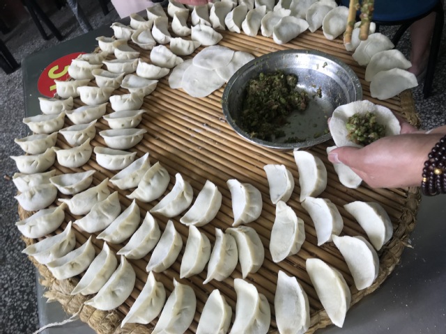 大家提前准备好馅料,和好面,做好前期准备工作,在包水饺的过程中,大家积极参与,大家一边拉着家常,一边谈论着近日暑期教课调研感想和城头镇由一个贫困镇通过近年来改革发展成较为富裕的城镇的变化。
