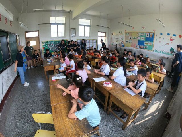 九点四十分,见面会结束。团队根据学生们的年级划分了不同班级,并指定了负责班级各项工作的班主任和任课老师,由他们带领班级同学去各自教室进行教学活动。其中,由一年级学生组成的班级学习了英语二十六字母歌,为接下来展开的英语课程教学做铺垫;由二三年级学生组成的班级在团员成员的带领下一同学习了唱歌,活跃班级气氛;由四五年级学生组成的班级进行了学生的自我介绍以及卫生分组,并且进行了安全教育,留存了家庭联系方式,以便成员更好地了解他们,增进学生与团员成员之间的感情。