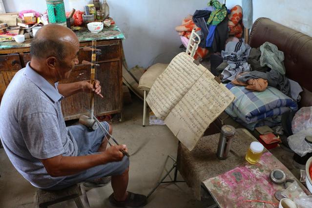 通过和老人的交谈,党支部成员了解到,老人从十六岁开始学习京胡,但是由于家境贫寒,因此所有的京胡都是老人自己亲手制作,所弹奏的乐谱也都是老人亲手所写,每一个音符都流淌着老人对音乐的热爱。