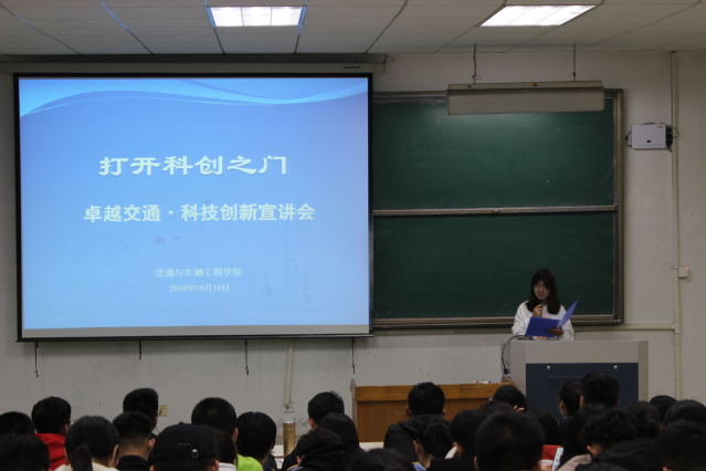 为营造学院良好科技创新氛围,培养同学们的创新思维和创新意识,10月16日晚,由我院创新创业中心主办的“打开科创之门”卓越交通·科技创新宣讲会在4号教学楼105教室举行。此次会议由我院2016级交通运输专业周雁飞,车辆工程专业牛童,2017级交通运输专业刘学三位同学担任主讲人,交工、交运专业2019级的全体同学参加。