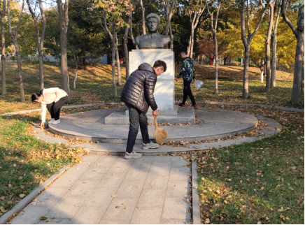 深秋时节,落叶纷飞。在冯思广英雄雕像之前,支部学生党员们发现了雕像底座有很多落叶,大家都不约而同地上前打扫,在大家的共同努力下,眼前的冯思广英雄雕像焕然一新,随后,大家在冯思广雕像面前共同合影留念并立志要继承发扬冯思广英雄在生命的抉择时刻舍己为人的高尚精神。