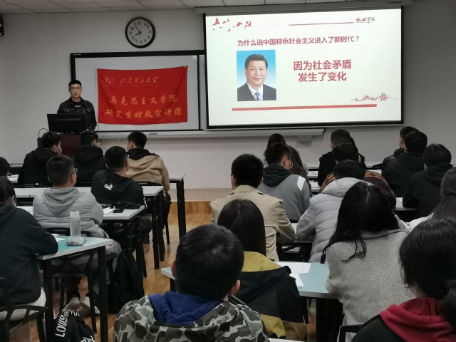 11月7日晚7:00,山东理工大学马克思主义学院时政宣讲团的“忆往昔峥嵘岁月,庆今朝七十华诞”主题时政宣讲在12号教学楼211教室开讲,2019年下半年党员发展对象参加,此次时政宣讲也是我院党员发展对象培训的重要环节。