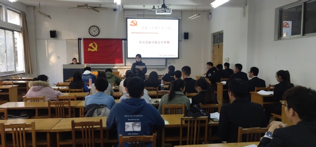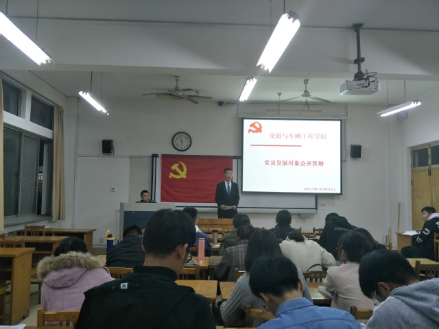 交通与车辆工程学院学生第二党支部于2019年11月11日在12号楼208教室举行党员发展对象公开答辩会,支部全体党员、13名党员发展对象、9名入党积极分子代表参加。