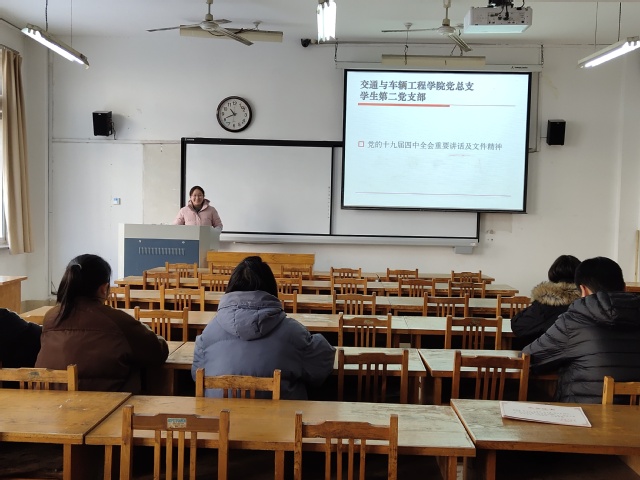 按照“不忘初心、牢记使命”主题教育的要求,2020年1月9日上午10:30,我院学生第二党支部在12 号教学楼208 教室,围绕“学习贯彻党的十九届四中全会重要讲话、文件精神”的主题进行了双周集中政治理论学习。本次活动由赵菁、郑习庆同志主讲,支部全体学生党员参加。
