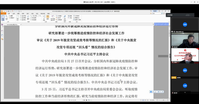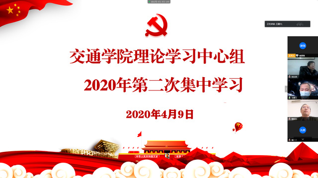 4月9日上午,交通学院理论学习中心组通过“腾讯会议”平台开展了集体学习,专题学习了3月27日召开的中共中央政治局会议精神,学院理论学习中心组成员参加学习,会议由党总支副书记王建兴主持。