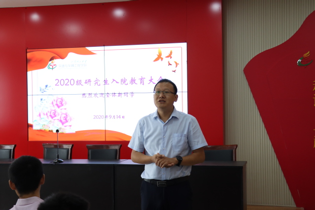 李波代表全院教职工向2020级硕士研究生加入交通学院表示热烈的欢迎和诚挚的祝贺。李波老师以:“多少同学为了科研的梦想读研?”为切入点,深刻地探讨了作为一名研究生,要对以后的学习生活把握好方向,清楚定位,坐住冷板凳,俯下身子做科研。以生动活泼的语言让同学们认识到研究生阶段确立目标、明确定位的重要性。