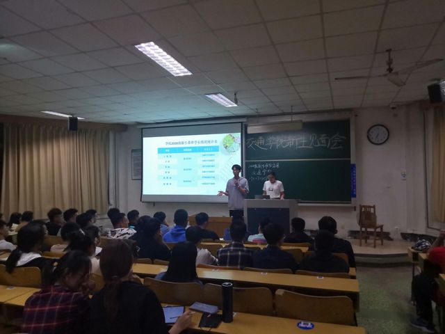 会议开始,吕科晨、杨雨与姜瑞瑞三位新生导员先进行了简单的自我介绍,并对新生的到来表示热烈的欢迎。他们向新生介绍了学校的基本情况,对如何正确看待大学、如何尽快适应新的环境做出了回答,并告知新生各自班级带班学长的联系方式,使新生能够在有困难的时候及时得到帮助。接着,各班级带班学长向在座新生进行自我介绍。