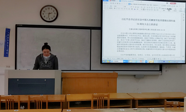 首先是苗佳政同志带领大家一起学习《习近平总书记在纪念中国人民解放军抗美援朝出国作战70周年大会上的讲话》,随后是张坤梅同志带领大家学习《习近平总书记在庆祝深圳经济特区建立40周年庆祝大会上的讲话》。