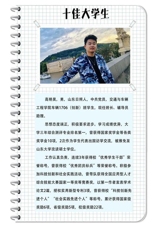 “高中和大学的学生工作完全不同,一开始担任班长的时候,我感觉很不适应。”最初面对各种文件时,他一筹莫展,为了组织好每一次班团活动,他慢慢学习摸索,上网搜集资料、询问学长学姐。从一开始对资料的一窍不通到试探性的努力,再到最后凝聚起整个班集体,高明昊一步一个脚印,带领着班级从平凡走向出众,从默默无闻走向大放光彩,最终实现了班级和个人“双十佳”的好成绩。回忆起大一这些的时光,他的脸上浮现出了笑容。