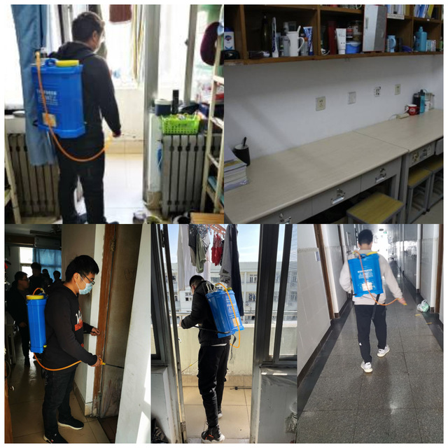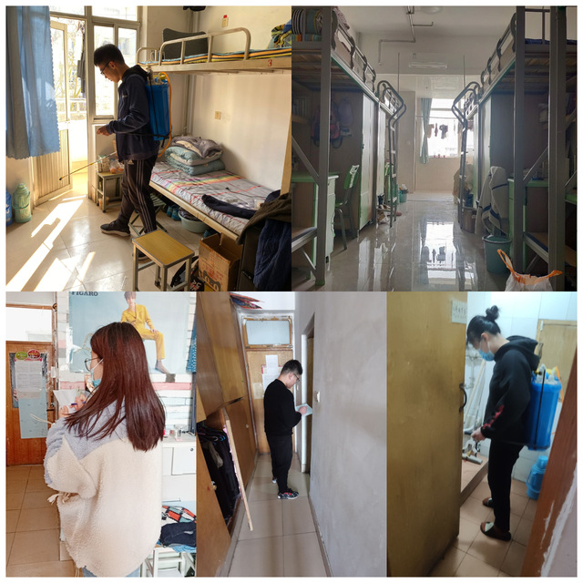 此次活动分为消杀和卫生大扫除两个阶段。第一阶段,辅导员老师带领学生对所有宿舍、研究生实验室进行分批次消杀工作,各年级利用公寓配备的消毒工具对宿舍内部进行全面、彻底消杀,保证了公寓的卫生安全。第二阶段,组织全体同学开展公寓卫生大扫除及安全排查。此次活动,同学们十分重视,对宿舍进行了细致的打扫,并进行了全方位的消毒。各个专业的辅导员们到学生公寓仔细检查清理成果,认真排查潜在的用电隐患等安全问题,并对同学们的打扫成果提出表扬,但也有宿舍存在不足之处,老师们和学生干部对检查中出现的问题进行了批评与指导,强调了宿舍卫生和安全的重要性,同学们都认真对待,仔细倾听,及时改正。
