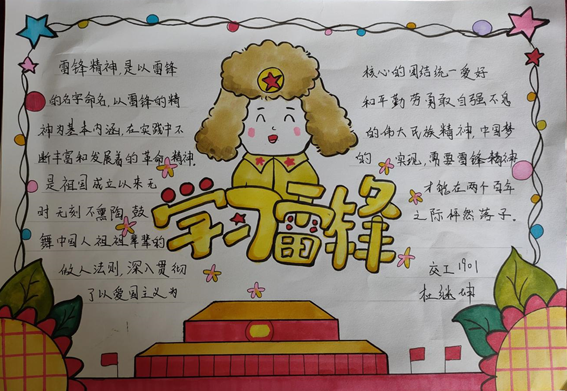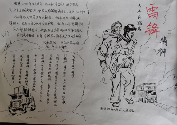同学们想法新颖别致,创作富有个性,字里行间尽显绘画书法功底,通过图画将自己心中的雷锋描绘出来,用文字书写雷锋的光荣事迹,将雷锋精神与当今时代紧密联系。在绘制手抄报的同时也沉浸式地思考——在风华正茂的年纪里应该怎样践行雷锋精神,怎样创造一个有价值的青春。比赛最终评选出多个一、二-、三等奖,并将优秀获奖作品在学院展板展出。