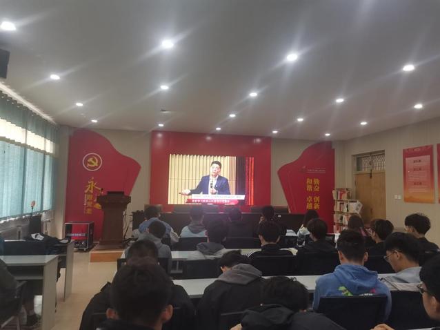活动开始前,同学们有序就坐。随后由张凯为同学们播放直播,进行党史学习教育。