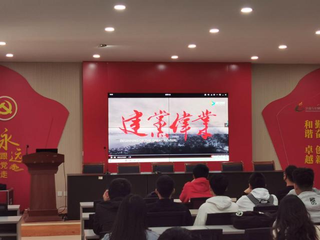 首先,郑文浩组织同学们观看了党史题材红色电影《建党伟业》,此电影围绕1921年前后展开,由民初动乱、五四运动及中共建党三部分剧情组成。讲述了在战火连天的年代,中国共产党领导人民一步一步走向胜利的故事。观影过程中全体同学都认真观看,会场气氛庄严,体现了同学们对老一辈革命家的崇敬和爱戴。
