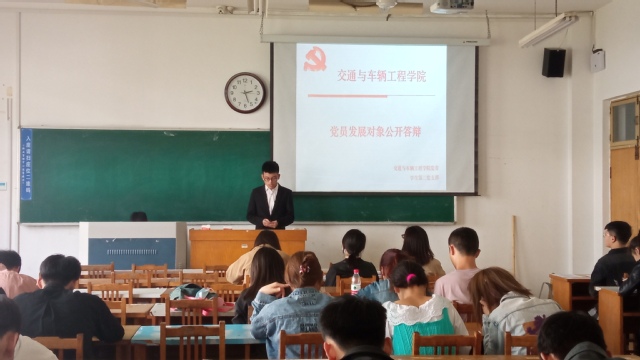 交通学院学生第二党支部于2021年4月29日在12号教学楼202教室举行党员发展对象公开答辩大会。此次答辩会由学生第二党支部成员孟晓文主持,支部党员共同参加。