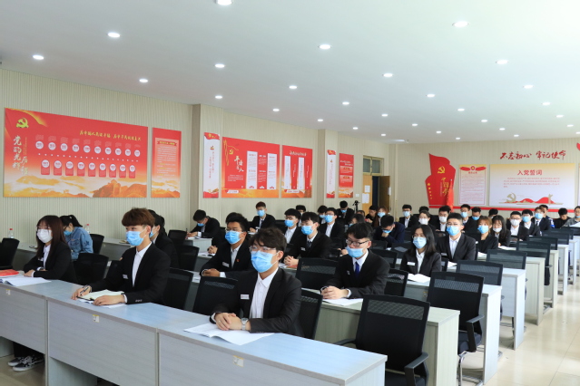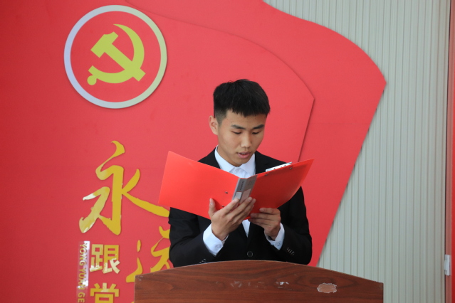 学院青马班学员代表张温龙发言,他倡议同学们树立远大理想,不断追求进步;恪守学生本分,牢记服务宗旨;勤勉务实做事,认真履职担责。