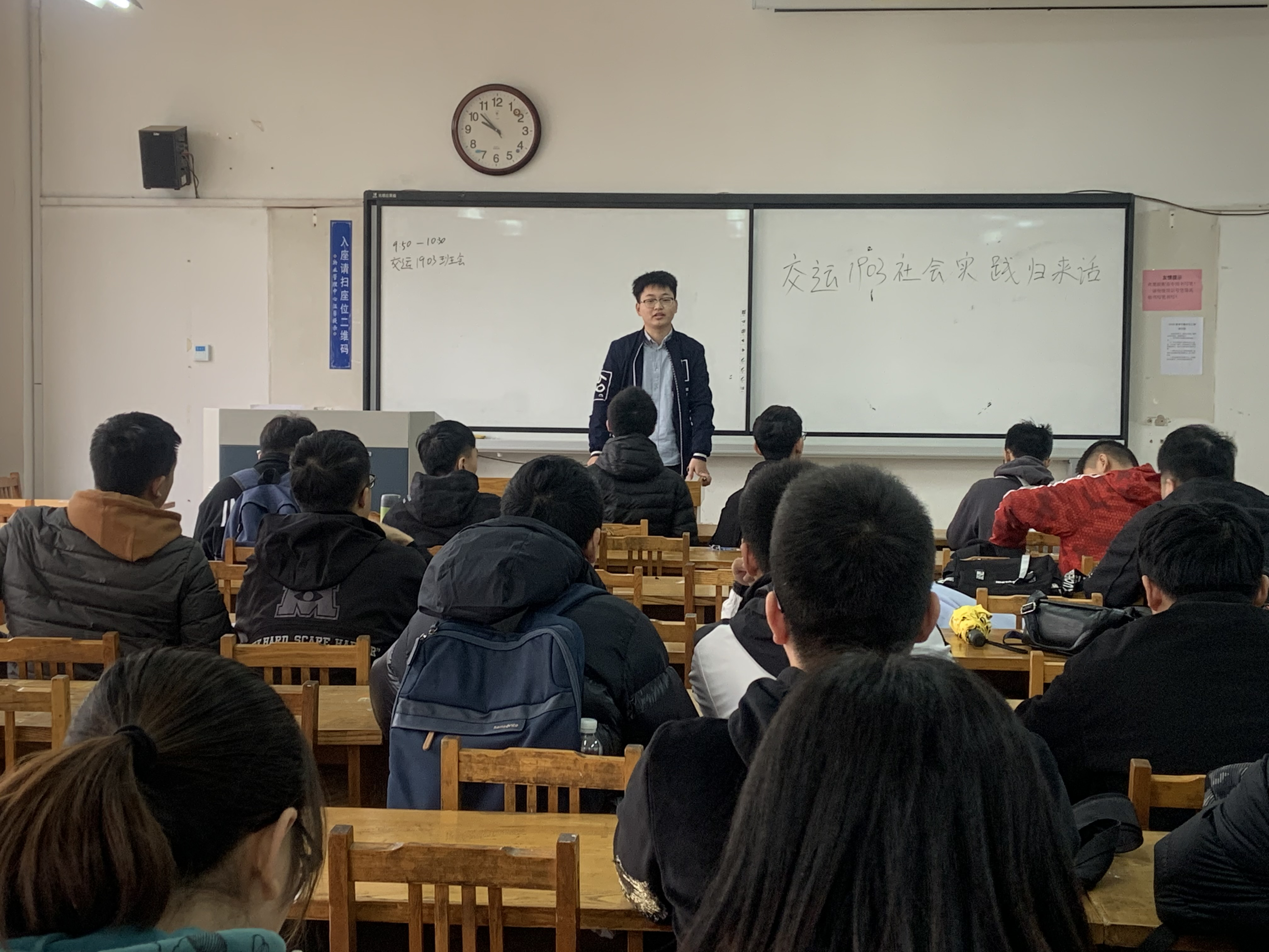 3月11日,交通学院交运1903班于在12教208举行2021年寒假社会实践归来话经验分享活动。活动由交运1903班班长陈旭杰主持。