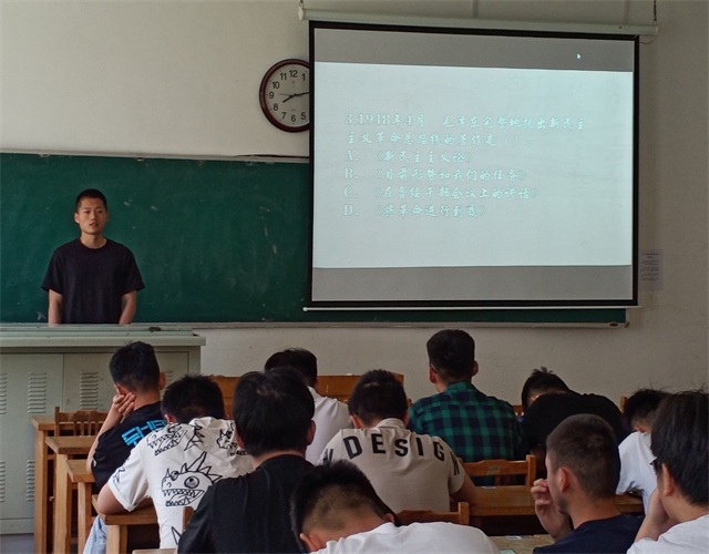 5月12日上午,班级在12号教学楼215教室开展“风华正茂,青春颂党”主题演讲比赛和党史答题抢答比赛。活动中,康一鸣、周高淇、罗友鹏等8名同学就“风华正茂,青春颂党”的主题做出演讲。接着,团支部进行四史抢答比赛,班级同学积极参与,举手抢答。