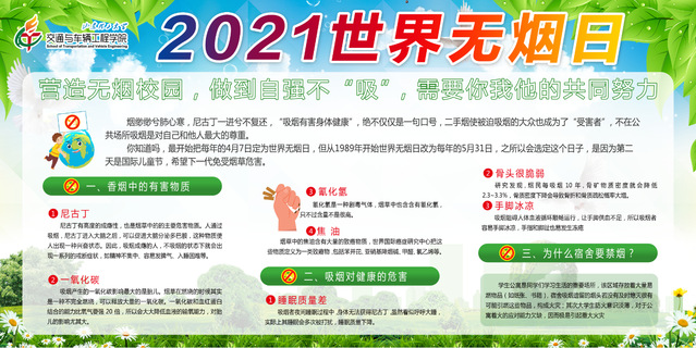 青烟长在,噩梦长随。今年5月31日是世界卫生组织发起的第34个世界无烟日,为提高同学们对吸烟危害健康的认识,促进宿舍内早日完成全面禁烟的目标,5月29日,交通学院学生会生活服务部组织成员走进宿舍进行“承诺戒烟,共享无烟环境”的主题教育活动。