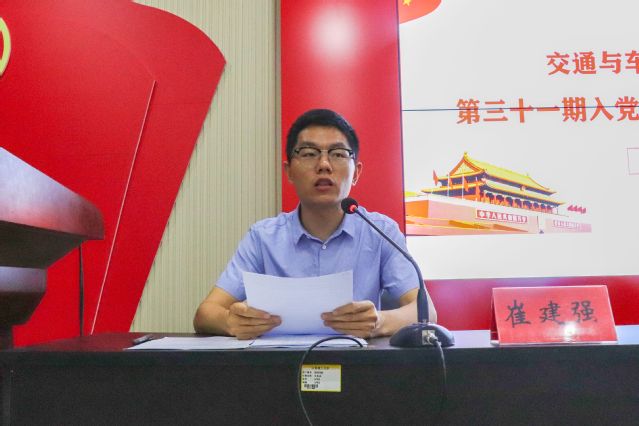 崔建强宣读了《交通与车辆工程学院党校第三十一期入党积极分子培训班安排意见》,明确了此次培训的任务、时间、内容和考核标准等。